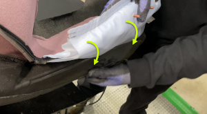 trim onto the driver seat back rest foam, and then align the Velcro strips (x4).