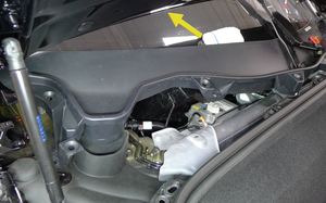 NoteRotate the LV battery to maneuver it in between the cowl screen panel and the air suspension reservoir.