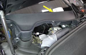 to around the RH hood hinge, and then fasten the clip that attaches the hinge cover to