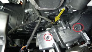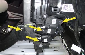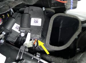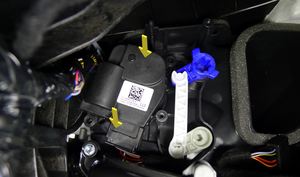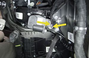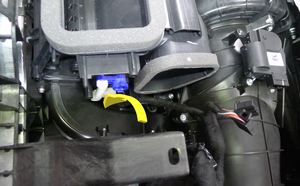 Secure LH floor HVAC actuator and LH floor duct temp sensor connectors.