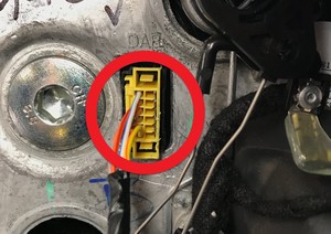 Note3x connectors, 1x clip, 6x tabs, Release 2x locking tab on airbag connector.