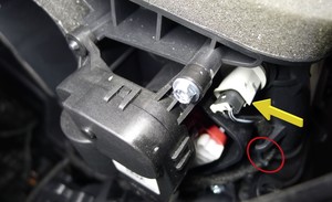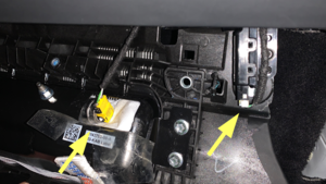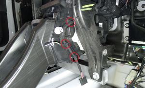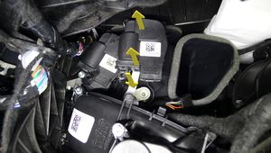 Note2x connectors, 1x clip, 6x tabs, Release 2x locking tab on airbag connector.