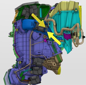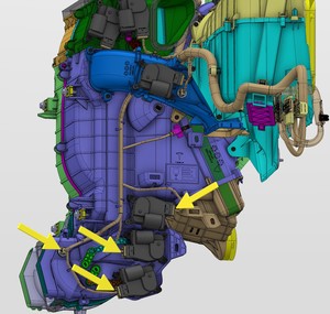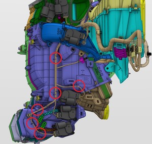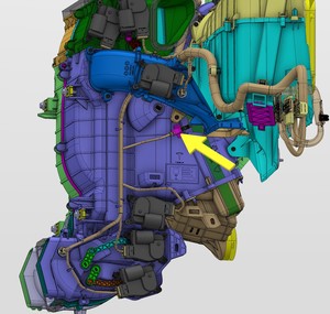 Note2x connectors, 1x tab, Secure HVAC harness to housing.