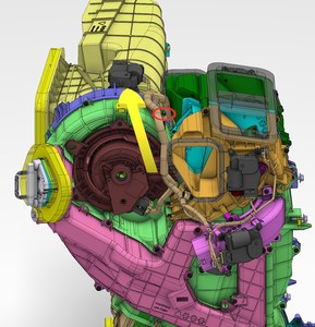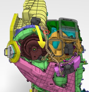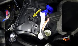 Note1x connector, 2x datums, Rotate pillar inboard to access connector, Release datums upward out of IP sub assembly.