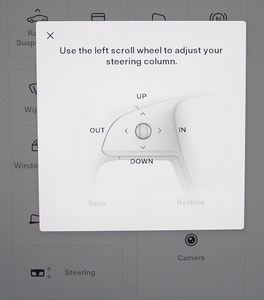 NoteVia UI > Controls > Steering , Use left steering wheel scroll wheel to adjust steering column.