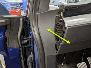 Note2x clips, 3x datums, Release clips from upper A-pillar and IP sub assembly, Lift mid A-pillar trim out of lower A-pillar trim.