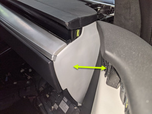 NoteFold RH primary support carpet up, Rotate RH footrest panel out of vehicle.