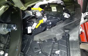 Note1x tab, Secure at top to driver left foot floor jumper duct then install to HVAC housing.