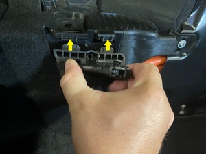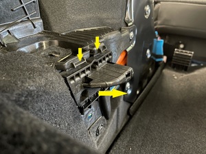 tabs (x2) that attach the LH trunk load floor bracket to the vehicle, and then remove