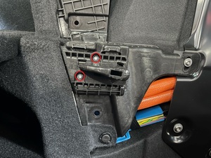 - Remove the LH trunk load floor bracket cover. See Cover - Bracket - Trunk Load Floor - LH (Remove and Replace).