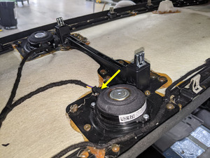 the headliner, and then install the bolts (x3) that attach the speaker to the