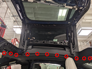 - Remove the LH and RH rear coat hooks. See Coat Hook - Rear - LH (Remove and Replace).