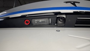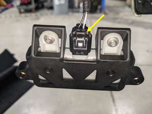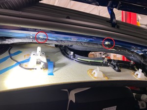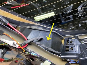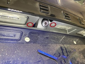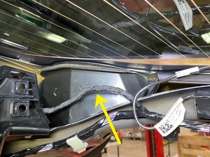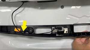 NoteDo not fully secure the applique yet. Rest on the liftgate and route rear facing camera onto the applique bracket.