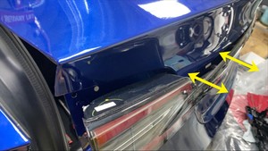 NoteNote the center of the applique is secured by clips.NoteTake care not to damage the applique or body.NoteThe applique can let rest on the liftgate.
