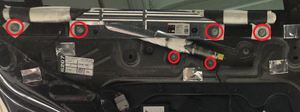 Note17x clips, Align strut cover first, 1x connector may be present on early production vehicles