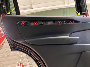Note4x clips, Carefully release clips and double-sided tape that secure rear wheel arch to rear door assembly