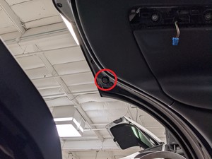 Note1x grommet, Route harness into LH falcon door and secure harness grommet