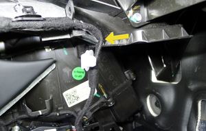 NoteCarefully maneuver cable between IP carrier and passenger footwell vent at HVAC assembly