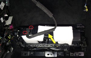 Remove fasteners securing RH knee air bag assembly to vehicle