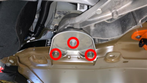 LH rear subframe shear plate to the HV battery, and then remove the shear plate from the