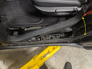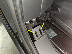on the vehicle, install the clips (x2) that attach the trim to the lower B-pillar