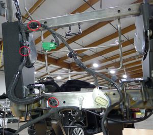 Carefully maneuver the RH 2nd row seat harness through the outboard seat riser into the center section.