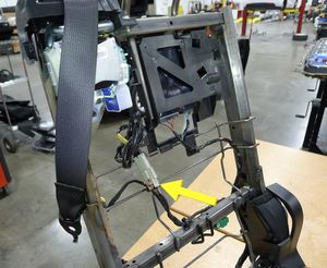 Carefully maneuver the RH 2nd row seat harness through the outboard seat riser.