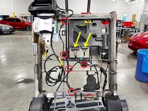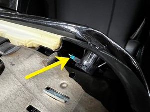 Secure the clips (x6) that attach the RH 2nd row seat harness to the seat frame, and then connect the controller ECU electrical connectors (x2).