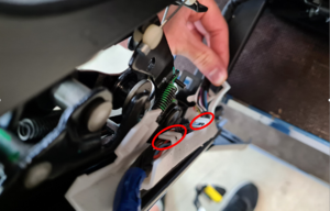 Release the clips (x3) that attach the RH 2nd row seat harness to the cushion frame.