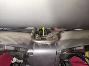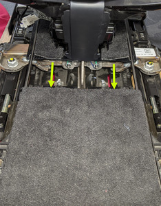 Remove the screws (x2) that attach the LH 2nd row seat magic carpet to the seat