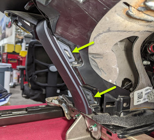 strip onto the seat assembly, and then secure the tabs (x5) that attach the trim strip