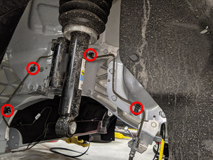 rear jounce hose to the LH rear brake lines, and then disconnect the brake lines.16 Nm (11.8 lbs-ft)NoteUse of the following tool(s) is recommended: