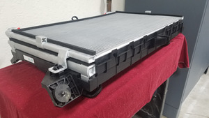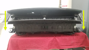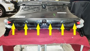 Release the locking tabs (x12) and clips (x2) that attach the active grille shutter to the cooling fan module, and then remove the active grille shutter from the cooling fan module.
