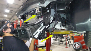 - Raise and support vehicle. See Raise Vehicle - 2 Post Lift.
