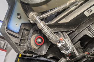 Install the grommet that attaches the ambient air temperature sensor to the front end carrier, and then connect the sensor connector.