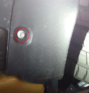 Install the 8 mm bolt that attaches the LH rear rocker panel fairing onto the