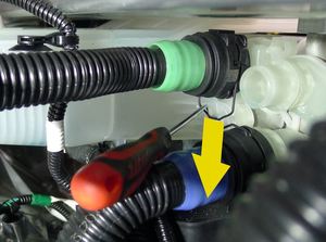 Release LH wiper arm hose nozzle