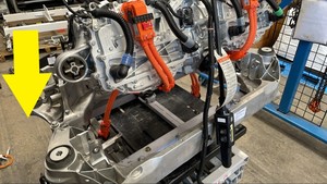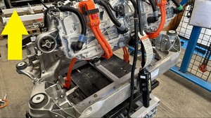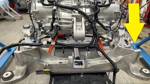 sling tool and carefully lift the rear drive unit out of the rear subframe, routing the