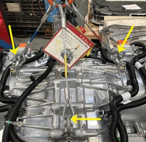 blue and red cables, and then use the hooks (x3) to attach the drive unit sling tool to