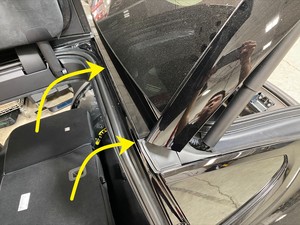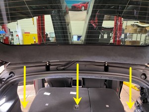 NoteMake sure the seal is fully secured onto the rear roof applique and is positioned under the center liftgate trough trim.