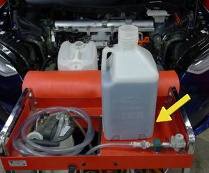 NoteDo not place container with 15L of coolant on top of CFM fan shroud, Position cart as close as possible to front of vehicle
