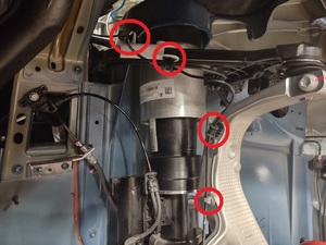 - Raise and support the vehicle on a 2 post lift. See Raise Vehicle - 2 Post Lift.
