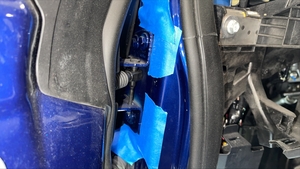 Install the pivot pin bolt that attaches the LH front door drive unit to the
