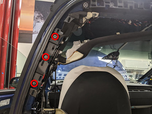 Secure the clips (x2) that attach the LH curtain airbag to the LH upper B-pillar