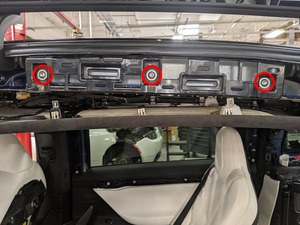 Install the screws (x2) that attach the LH and RH rear coat hooks to the