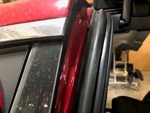 Ensure that the falcon wing door seal is seated behind the LH rear racetrack