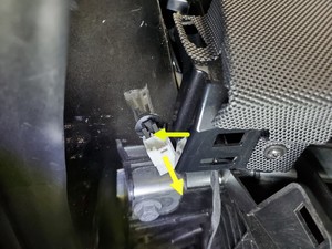 Note1x cover, 1x clip, 1x datum, 1x screw, 8 mm, 1 Nm, Align datums and footwell vent before installing screw