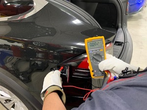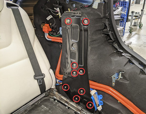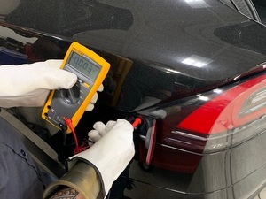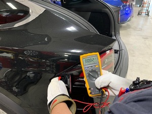 NoteMake sure to wear PPE (HV gloves, safety glasses) when working on high voltage component, Measure B+ to B-, and B+ to Ground (use trunk striker as a ground for the isolation check) If voltage is greater than 10V, Pack contactors are not open or welded, Stop work and reach out to Service Engineering,