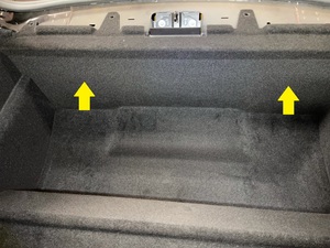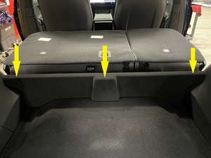 Note2x clips, Slide panel down behind seats, Lower front of panel to engage clips