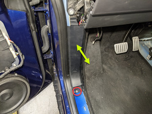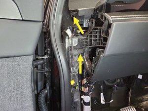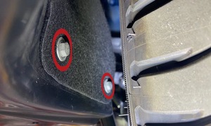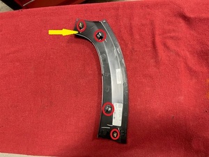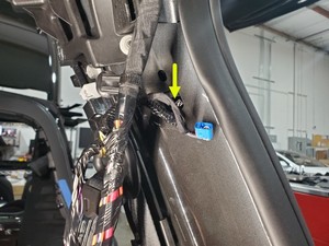 Pull back lower seal on LH B-Pillar applique and install screws securing lower LH B-Pillar applique to the body